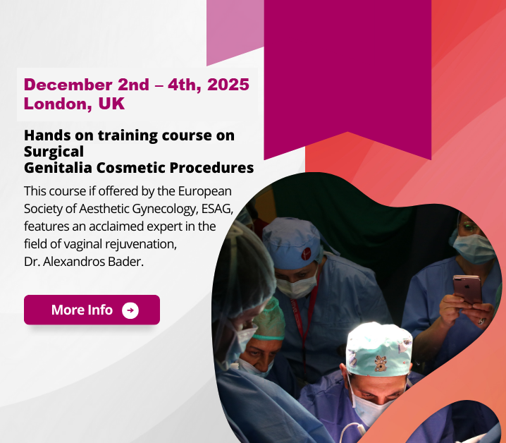 The European Society of Aesthetic Gynecology | ESAG is delighted to present the Live Cases Training Course on Non Surgical Female Genitalia Cosmetic Procedures with a fully rejuvenated scientific program. Scientific Faculty:&n...