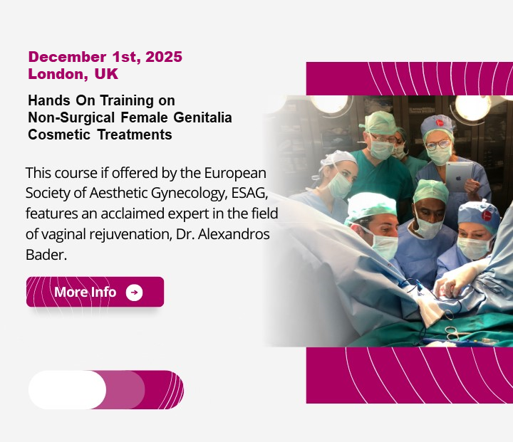 The European Society of Aesthetic Gynecology | ESAG is delighted to present the Hands On Training Course on Non Surgical Female Genitalia Cosmetic Procedures with a fully rejuvenated scientific program. Scientific Faculty:&nbs...